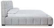 A divine merger of casual and contemporary design, this king upholstered bed is the upgrade you've been dreaming of. Plush, deep pillowed tufting creates an impressive silhouette that's just as comfortable as it is stylish. And the textured light gray Next-Gen Nuvella™ performance fabric is soft and easy to clean. Now there's a bed with staying power.